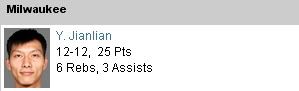 This one's for Ivan. His main man Yi hit his first 12 shots today. Currently, he just missed his first shot of the game with a minute left in the 3rd quarter leaving his current shot stats at 12-13. I don't know what the record for most shots in a row is but he must've been well on his way to reaching it.